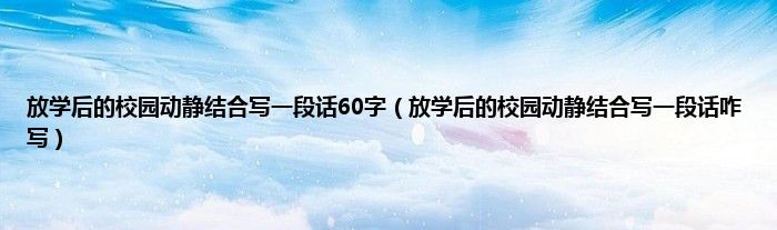 大家好,小科来为大家解答以上问题。放学后的校园动静结合写一段话60字,放学后的校园动静结合写一段话咋写很多人还不知道,现在让我们一起来看看吧!