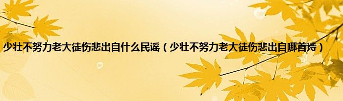 大家好,小科来为大家解答以上问题。少壮不努力老大徒伤悲出自什么民谣,少壮不努力老大徒伤悲出自哪首诗很多人还不知道,现在让我们一起来看看吧!