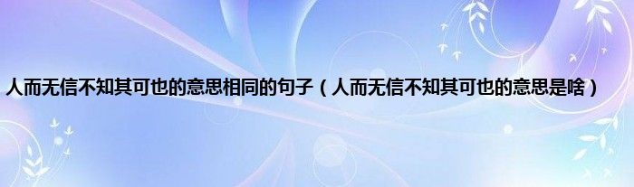 大家好,小科来为大家解答以上问题。人而无信不知其可也的意思相同的句子,人而无信不知其可也的意思是啥很多人还不知道,现在让我们一起来看看吧!