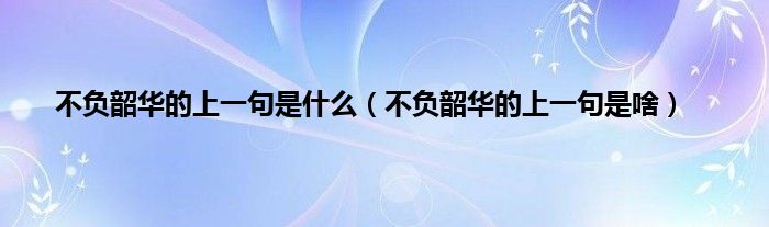 大家好,小科来为大家解答以上问题。不负韶华的上一句是什么,不负韶华的上一句是啥很多人还不知道,现在让我们一起来看看吧!