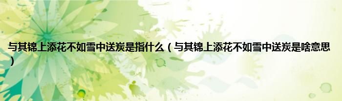 大家好,小科来为大家解答以上问题。与其锦上添花不如雪中送炭是指什么,与其锦上添花不如雪中送炭是啥意思很多人还不知道,现在让我们一起来看看吧!