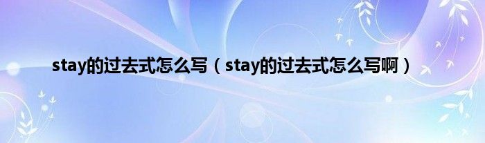 大家好,小科来为大家解答以上问题。stay的过去式怎么写,stay的过去式怎么写啊很多人还不知道,现在让我们一起来看看吧!