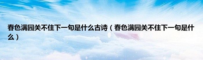大家好,小科来为大家解答以上问题。春色满园关不住下一句是什么古诗,春色满园关不住下一句是什么很多人还不知道,现在让我们一起来看看吧!