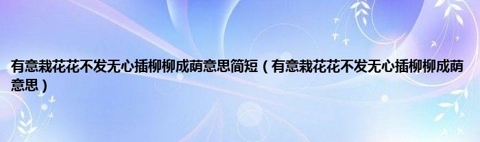 大家好,小科来为大家解答以上问题。有意栽花花不发无心插柳柳成荫意思简短,有意栽花花不发无心插柳柳成荫意思很多人还不知道,现在让我们一起来看看吧!
