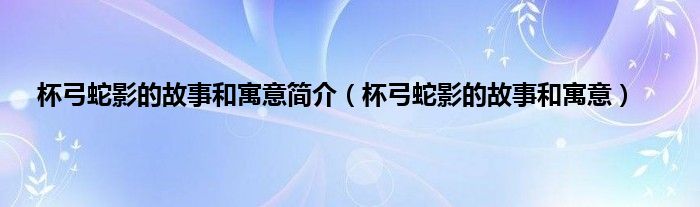 大家好,小科来为大家解答以上问题。杯弓蛇影的故事和寓意简介,杯弓蛇影的故事和寓意很多人还不知道,现在让我们一起来看看吧!