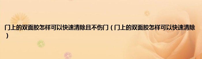 大家好,小科来为大家解答以上问题。门上的双面胶怎样可以快速清除且不伤门,门上的双面胶怎样可以快速清除很多人还不知道,现在让我们一起来看看吧!