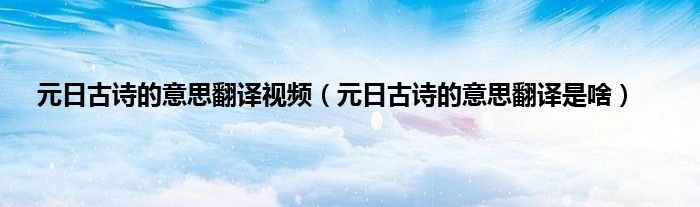 大家好,小科来为大家解答以上问题。元日古诗的意思翻译视频,元日古诗的意思翻译是啥很多人还不知道,现在让我们一起来看看吧!