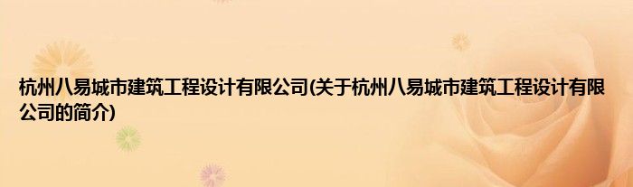 本文关于杭州八易城市建筑工程设计有限公司的简介就讲解完毕,希望对大家有所帮助。