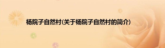 本文关于杨院子自然村的简介就讲解完毕,希望对大家有所帮助。