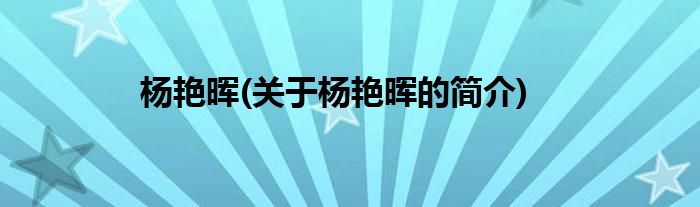 本文关于杨艳晖的简介就讲解完毕,希望对大家有所帮助。