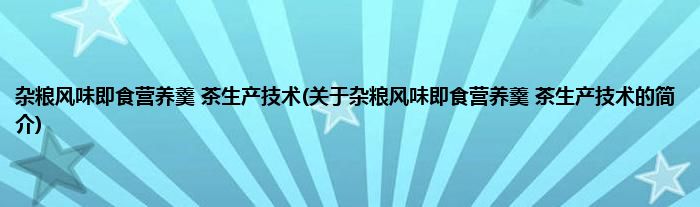 本文关于杂粮风味即食营养羹 茶生产技术的简介就讲解完毕,希望对大家有所帮助。