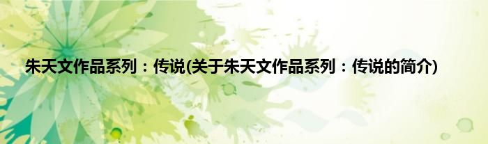 1、 《朱天文作品系列:传说(小说集1972—1981)》是2010年4月1日上海译文出版社出版的图书。