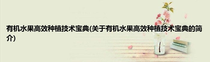 本文关于有机水果高效种植技术宝典的简介就讲解完毕,希望对大家有所帮助。