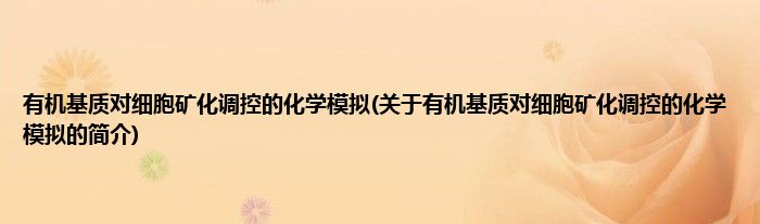 本文关于有机基质对细胞矿化调控的化学模拟的简介就讲解完毕,希望对大家有所帮助。