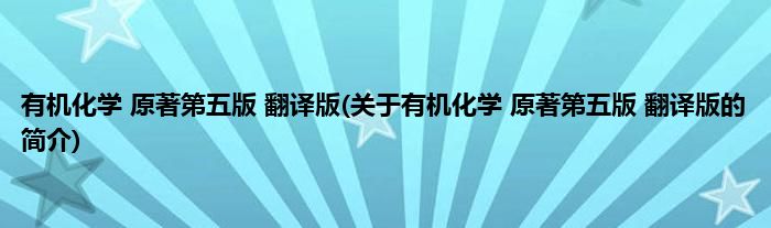 大家好,有机化学 原著第五版 翻译版,关于有机化学 原著第五版 翻译版的简介很多人还不知道,现在让我们一起来看看吧!