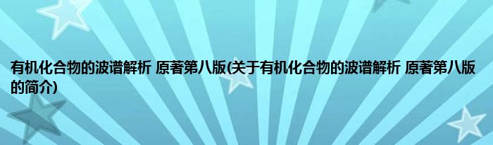本文关于有机化合物的波谱解析 原著第八版的简介就讲解完毕,希望对大家有所帮助。