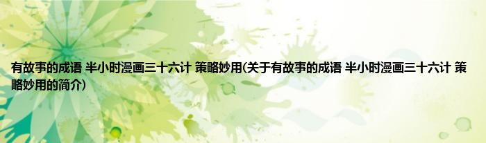 本文关于有故事的成语。半小时漫画三十六计。策略妙用的简介就讲解完毕,希望对大家有所帮助。