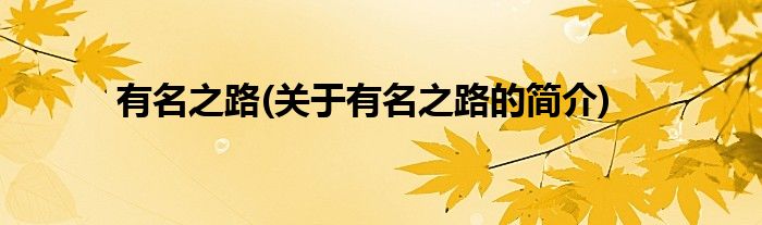 本文关于有名之路的简介就讲解完毕,希望对大家有所帮助。