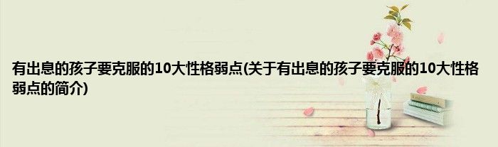 本文关于有出息的孩子要克服的10大性格弱点的简介就讲解完毕,希望对大家有所帮助。