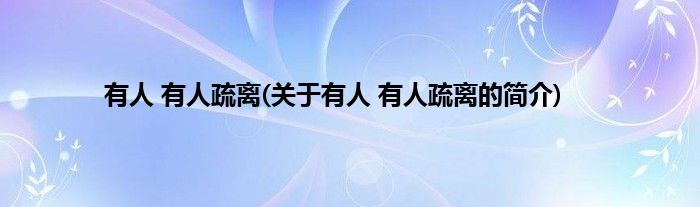 本文关于有人,有人疏离的简介就讲解完毕,希望对大家有所帮助。