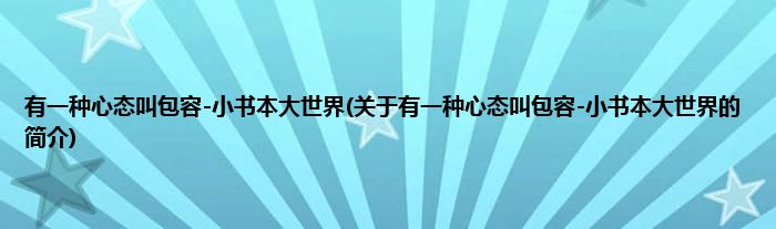 本文关于有一种心态叫包容-小书本大世界的简介就讲解完毕,希望对大家有所帮助。