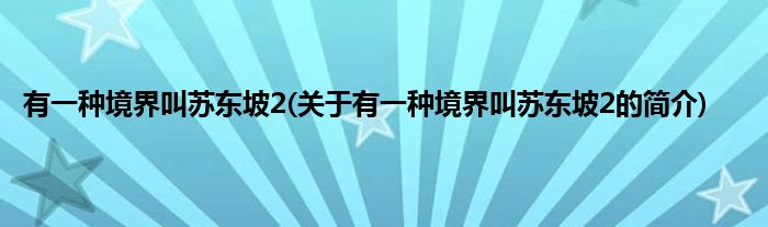 大家好,有一种境界叫苏东坡2,关于有一种境界叫苏东坡2的简介很多人还不知道,现在让我们一起来看看吧!