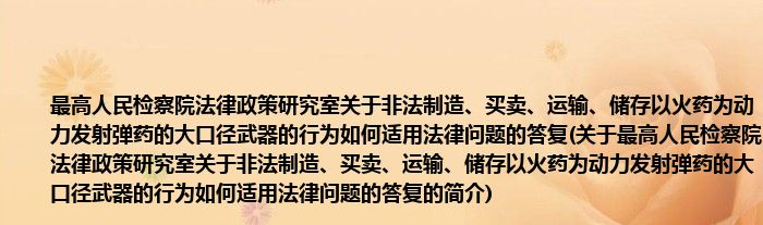 本文关于最高人民检察院法律政策研究室关于非法制造、买卖、运输、储存以火药为动力发射弹药的大口径武器的行为如何适用法律问题的答复的简介就讲解完毕,希望对大家有所帮助。