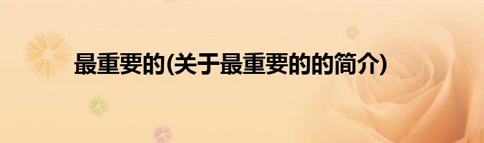 大家好,最重要的,关于最重要的的简介很多人还不知道,现在让我们一起来看看吧!
