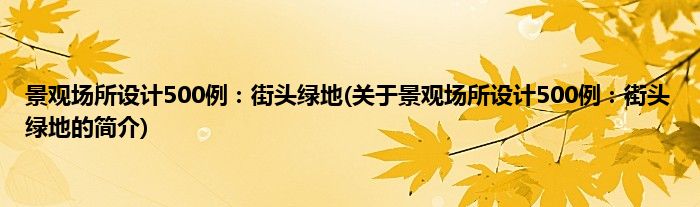 1、 《景观场所设计500例(4):街头绿地》精选了大量国内外景观项目的实景照片,主要分为六部分:街头绿地概述、街头绿地的地形设计、街头绿地的植物设计、街头绿地的铺装设计、街头绿地的景观建筑设计、街头绿地的小品设计。