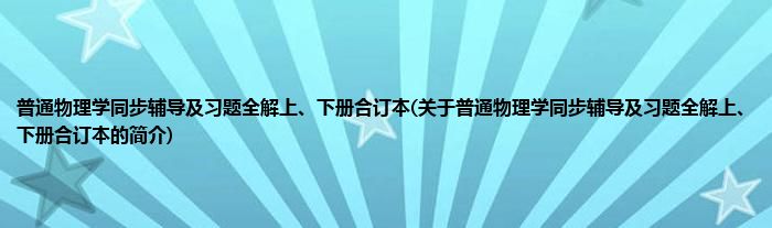 本文关于普通物理学同步辅导及习题全解上、下册合订本的简介就讲解完毕,希望对大家有所帮助。