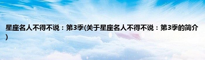 本文关于星座名人不得不说:第3季的简介就讲解完毕,希望对大家有所帮助。