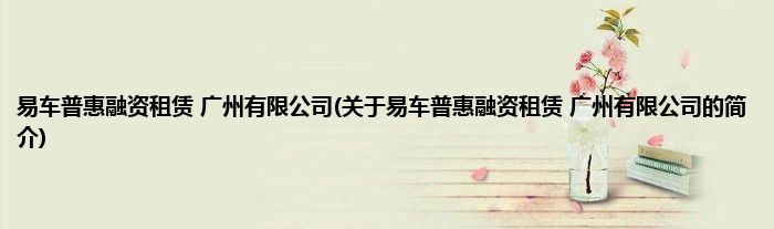本文关于易车普惠融资租赁 广州有限公司的简介就讲解完毕,希望对大家有所帮助。