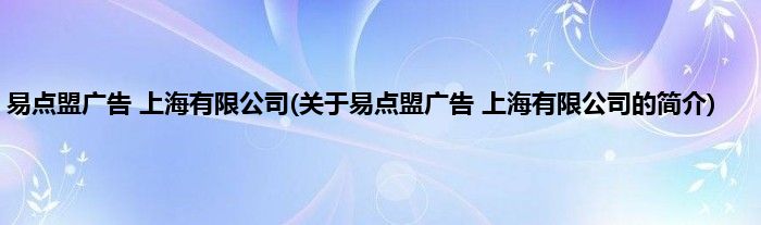 大家好,易点盟广告 上海有限公司,关于易点盟广告 上海有限公司的简介很多人还不知道,现在让我们一起来看看吧!