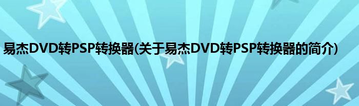 易杰DVD转PSP转换器(关于易杰DVD转PSP转换器的简介)