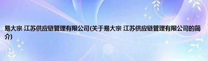 大家好,易大宗 江苏供应链管理有限公司,关于易大宗 江苏供应链管理有限公司的简介很多人还不知道,现在让我们一起来看看吧!