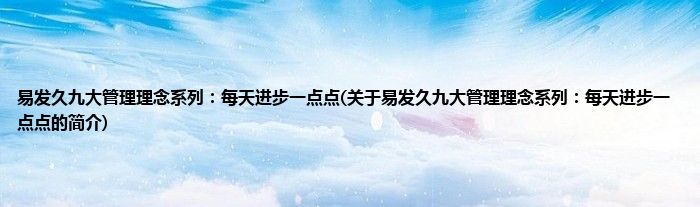 本文关于易发久九大管理理念系列:每天进步一点点的简介就讲解完毕,希望对大家有所帮助。