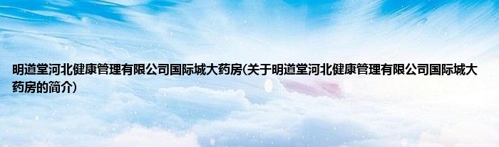 本文关于明道堂河北健康管理有限公司国际城大药房的简介就讲解完毕,希望对大家有所帮助。