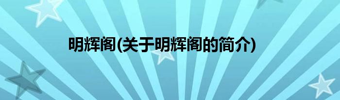 大家好,明辉阁,关于明辉阁的简介很多人还不知道,现在让我们一起来看看吧!