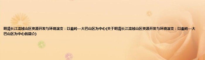 大家好,明清长江流域山区资源开发与环境演变:以秦岭—大巴山区为中心,关于明清长江流域山区资源开发与环境演变:以秦岭—大巴山区为中心的简介很多人还不知道,现在让我们一起来看看吧!