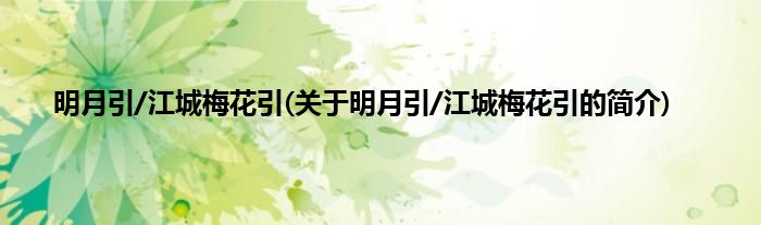 本文关于明月引/江城梅花引的简介就讲解完毕,希望对大家有所帮助。