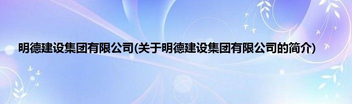 大家好,明德建设集团有限公司,关于明德建设集团有限公司的简介很多人还不知道,现在让我们一起来看看吧!