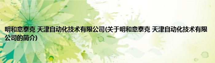本文关于明和意泰克 天津自动化技术有限公司的简介就讲解完毕,希望对大家有所帮助。