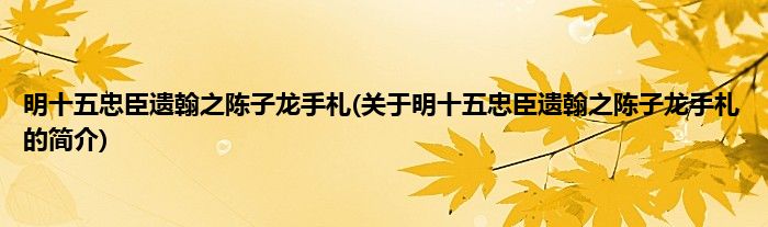 本文关于明十五忠臣遗翰之陈子龙手札的简介就讲解完毕,希望对大家有所帮助。