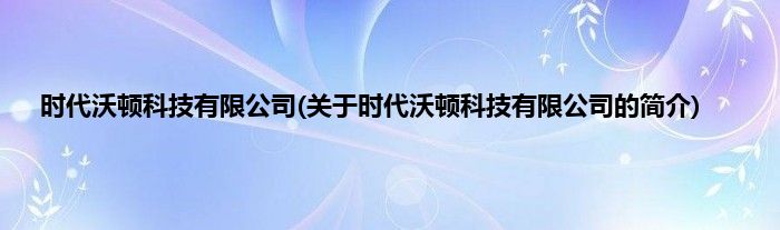 本文关于时代沃顿科技有限公司的简介就讲解完毕,希望对大家有所帮助。