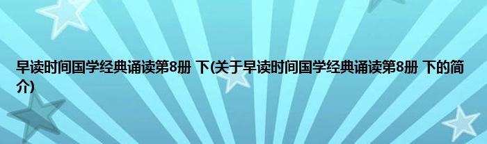 本文关于早读时间国学经典诵读第8册,下的简介就讲解完毕,希望对大家有所帮助。