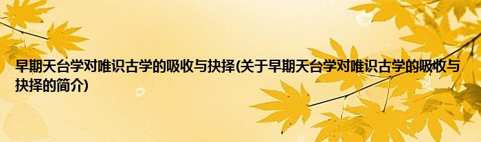 本文关于早期天台学对唯识古学的吸收与抉择的简介就讲解完毕,希望对大家有所帮助。