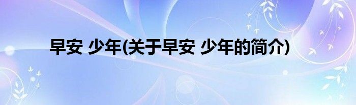 本文关于早安,少年的简介就讲解完毕,希望对大家有所帮助。
