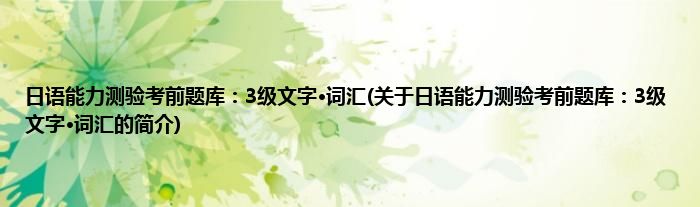 本文关于日语能力测验考前题库:3级文字·词汇的简介就讲解完毕,希望对大家有所帮助。
