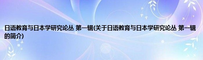 大家好,日语教育与日本学研究论丛 第一辑,关于日语教育与日本学研究论丛 第一辑的简介很多人还不知道,现在让我们一起来看看吧!