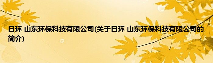本文关于日环 山东环保科技有限公司的简介就讲解完毕,希望对大家有所帮助。